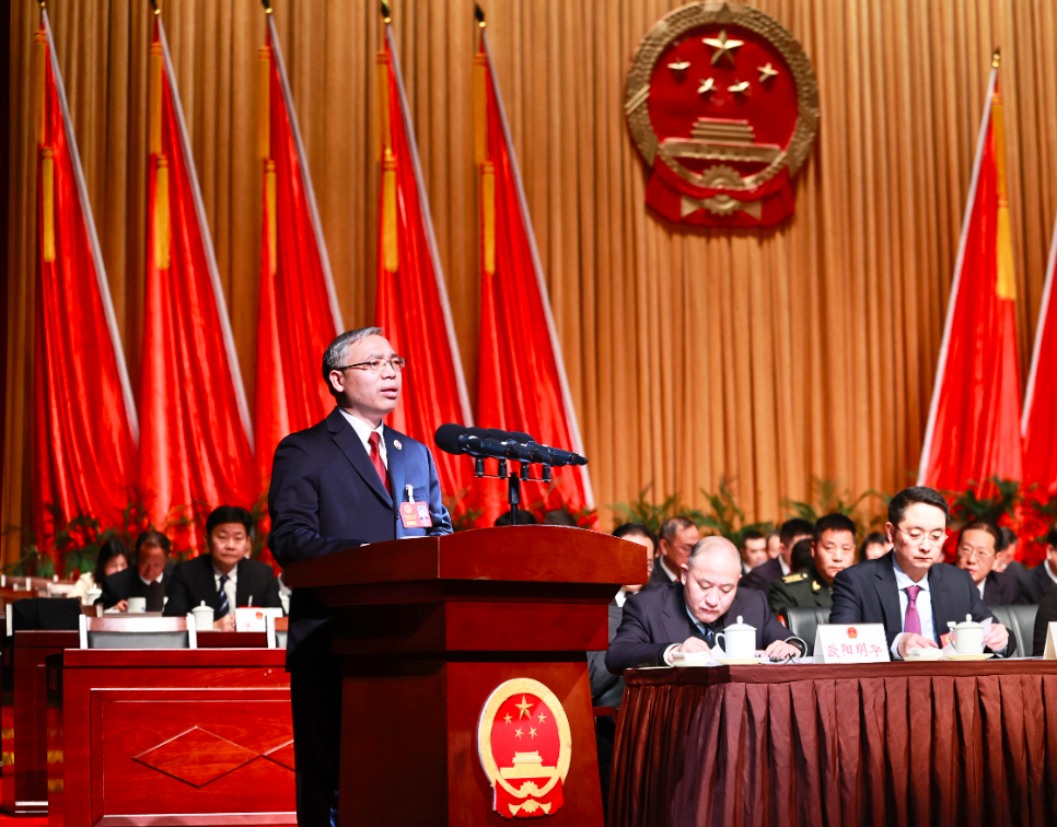 2025年1月12日,九江市人民检察院党组书记、检察长熊国钦在九江市第十六届人民代表大会第六次会议上作检察工作报告。